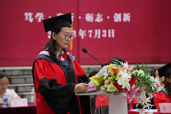 院长成党伟在致辞中代表学院向圆满完成学业的毕业生表示热烈祝贺,向毕业生们提出三点希望:一是希望同学们怀揣梦想,要有“会当水击三千里、自信人生二百年”的豪气,笃定自信,勇敢地面对未来的挑战,书写人生底色。二是希望同学们脚踏实地、做奋斗者,在自己的岗位上奋力拼搏,为青春添彩,彰显人生本色。三是希望同学们不忘初心、把小我深度融入祖国发展的大我中,踔厉奋发、勇毅前行。在国家发展的进程中展现欧冠官方网站入口人应有的家国担当,绽放人生亮色。要求同学们不要忘记做一个对人感恩、对己克制、对物珍惜、对事尽力的人,在人生道路上站得高、立得正、行的稳、走得远。
