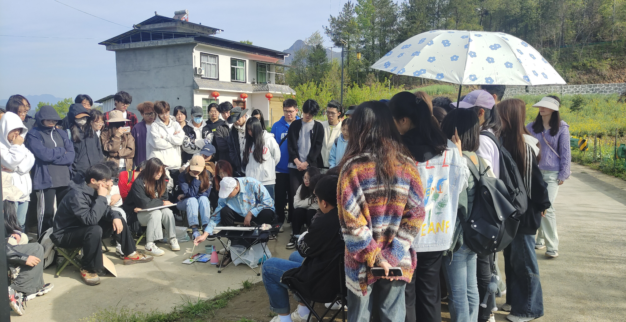 外出写生实践活动是学生亲身接触自然环境、人文景观和各种艺术资源,提升学生的真实感知﹑审美能力﹑表现能力,丰富艺术素养,培养创新创作能力的重要途径,也是美术学专业人才培养质量保障的重要教学活动环节;在检查过程中,通过现场观摩和师生交流,深入了解教学活动设计,教学方法运用,学生们的学习生活情况及外出实践教学活动安全,教学质量保障措施;副院长孙海洋对师生的安全问题进行了再次强调,对教师们的辛勤付出和学生们的积极参与表示赞赏。院长成党伟表示,外出写生实践活动是对传统课堂教学的有益补充,更是开拓学生视野,培养创造力和艺术素养的一次重要机会,鼓励带队教师们在课程设计中充分考虑学生的实际情况,合理安排教学内容,组织多样化的教学活动,丰富学生的学习体验,激发学生的学习热情,提高教学效果和学生的学习成效。