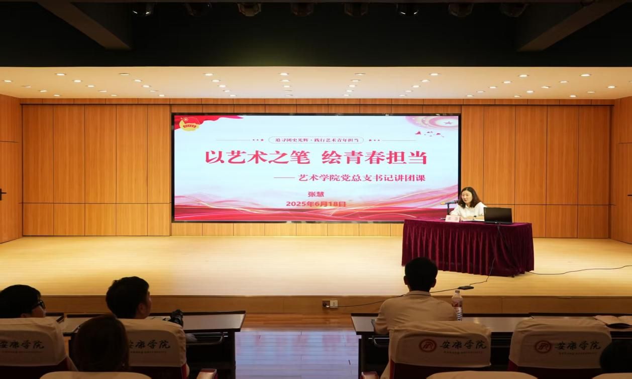 在此次团课中,张慧以时间为轴系统梳理共青团百年征程:从新民主主义革命时期,以五四运动、一二·九运动为例,讲述青年团员以热血投身反帝反封建斗争,用青春书写民族独立的壮丽史诗;到社会主义革命和建设时期,青年团员以奋斗为笔描绘国家建设蓝图;再到改革开放新时期,以创新为翼推动社会发展,直至新时代青年逐梦新征程的使命传承。她结合艺术专业特性,从四个维度剖析艺术青年的使命担当:既要传承传统文化精髓,将非遗技艺与现代艺术表达融合,让传统美学在当代焕发新生;又要聚焦时代精神,以画笔记录脱贫攻坚、乡村振兴等国家发展脉搏,用作品传递社会正能量;还要推动艺术创新,在数字媒体、跨界艺术等领域探索突破,以新技术拓展艺术边界;更要践行社会服务,通过艺术支教、社区文化建设等实践,让艺术走入基层、服务群众。此外,她围绕“争做新时代优秀共青团员”,明确提出“坚定信念、勤学专业、培养品德、勇于担当”的成长路径,强调青年学子需以团员标准严格要求自身,在专业学习中追求卓越,将艺术理想融入国家文化发展大局,以创新创作践行“以艺报国”的时代责任。