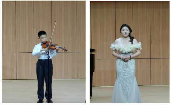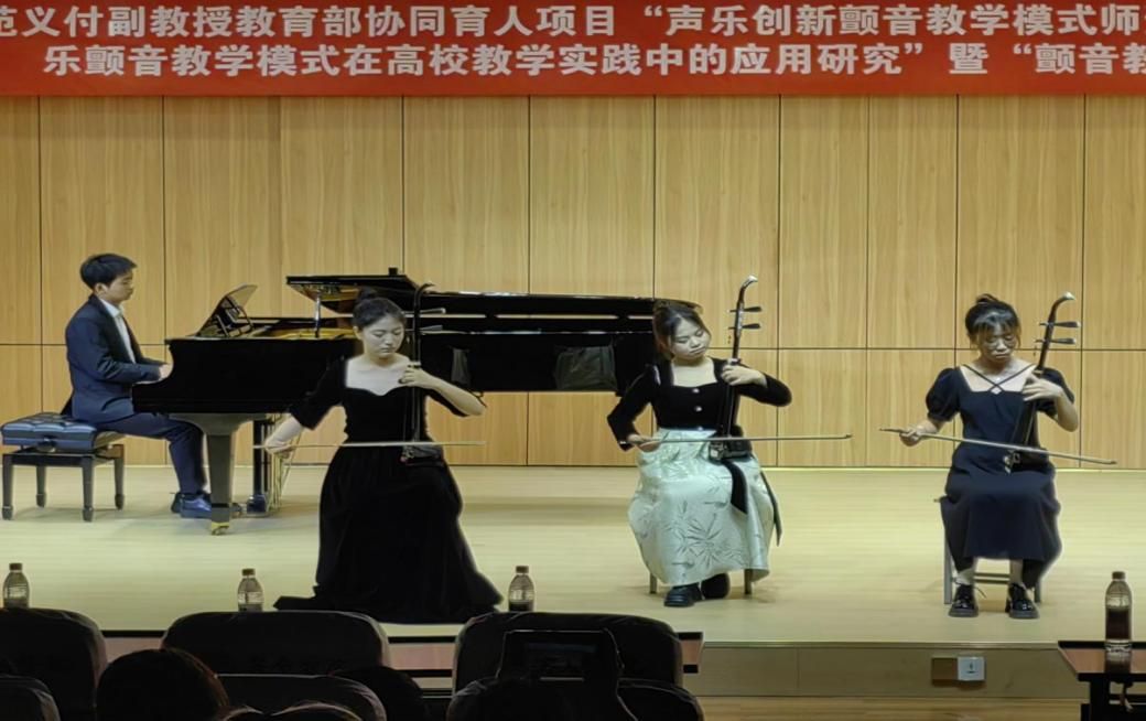 最后,范义付老师演奏的小提琴曲《渔舟唱晚》与二胡曲《二泉映月》,将音乐会推向高潮。他巧妙融合民族韵味与西洋技法,在《渔舟唱晚》中描绘出江南水乡的悠然意境,又在《二泉映月》里诠释出旧社会底层人民的苦难与抗争,展示了范老师声乐“颤音教学模式”学术研究和教学的实践成果。