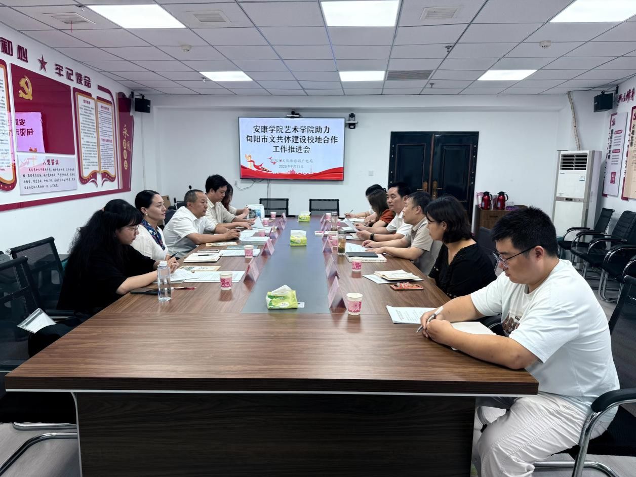 9月11日,欧冠官方网站入口院长李景林带领视觉传达设计系主任吴波,设计专业教师张静、任川,音乐学教师李玉娇赴旬阳市开展文化产业调研,并与旬阳市文化和旅游广电局举行合作座谈会,旬阳市文化和旅游广电局局长蔚世悦、副局长田勇与相关科室负责人参加会议。双方就2026届视觉传达设计专业毕业创作、非遗保护、文化共同体建设等进行深入交流并达成共识。