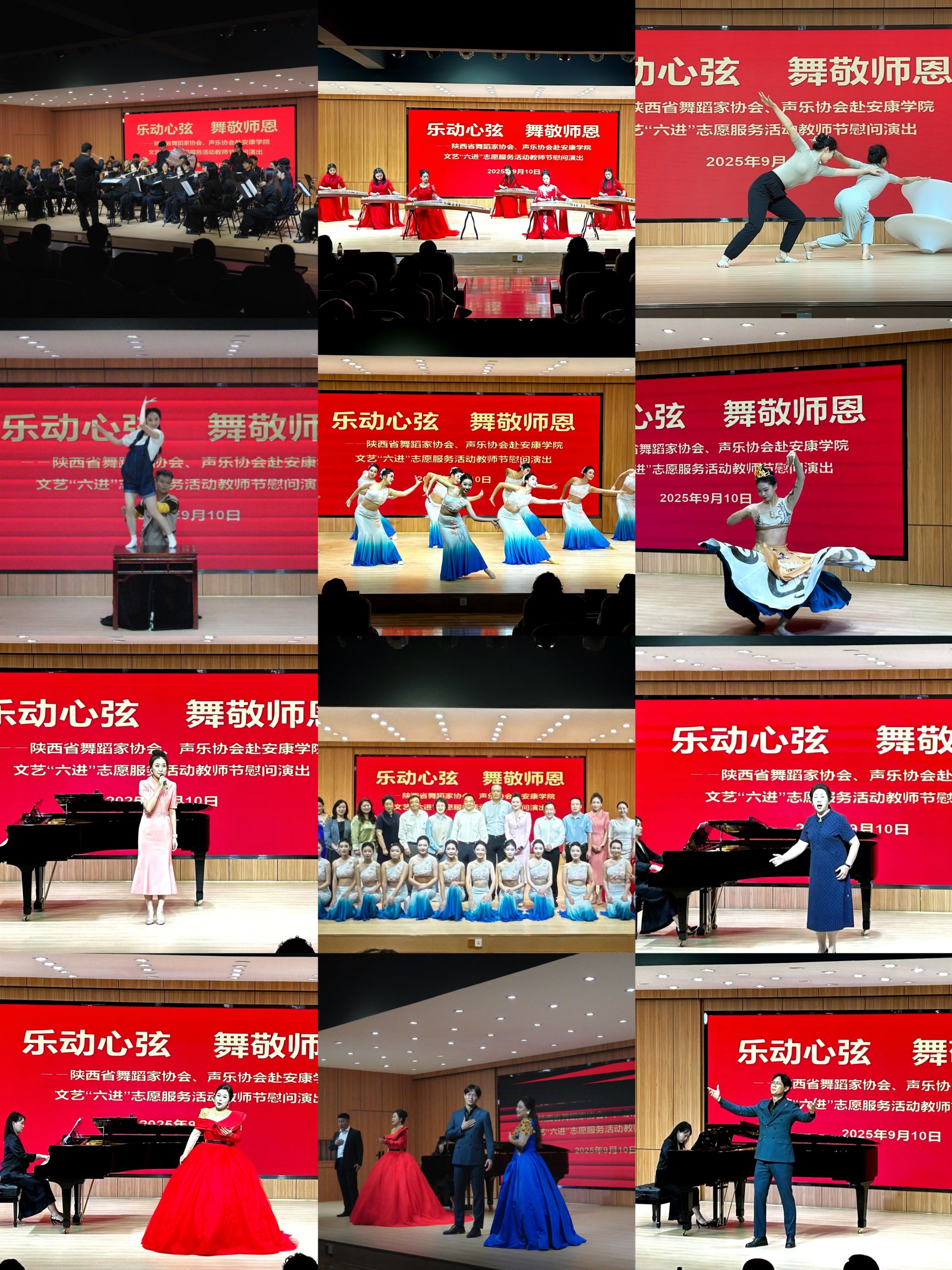 作为本次活动的重要参与方,欧冠官方网站入口欧冠官方网站入口充分发挥学科专业优势与人才资源优势,全力配合活动开展。学院组织专业教师与优秀学生代表,联合陕西省舞协、安康市舞协等多方文艺力量,共同打磨演出内容。在欧冠官方网站入口校内演出现场,学院师生与歌唱家安金玉、喻红,陕西师范大学舞蹈系等文艺工作者同台,通过舞蹈、歌唱等多元艺术形式,将对教师的感恩之情融入每一个动作、每一段旋律,精湛的表演赢得现场师生阵阵掌声,为校园营造了温馨浓厚的节日氛围。