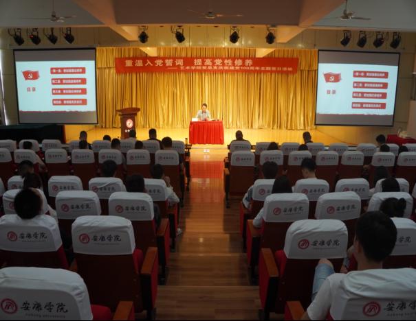 为庆祝中国共产党成立100周年,加强师生党性教育,改进学习工作作风,深入推进党史学习教育。2021年6月30日下午,欧冠官方网站入口党总支在江北校区1401演艺厅开展了“重温入党誓词,提高党性修养”庆祝建党100周年主题党日活动暨党总支书记讲党史学习教育专题党课。全体师生党员、发展对象、入党积极分子及团总支、学生会主要学生干部150余人参加了活动。本次活动由党总支副书记李万明主持。