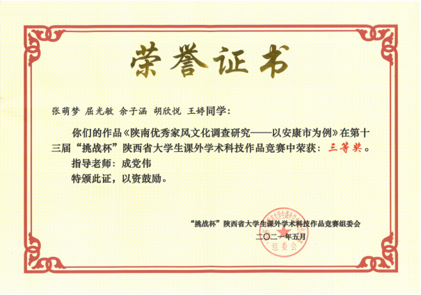 近日,由团省委、省委教育工委、省科协、省社会科学院、省学联共同主办,陕西师范大学承办的第十三届“挑战杯”陕汽集团陕西省大学生课外学术科技作品竞赛闭幕式暨颁奖仪式在陕西师范大学终南音乐厅举行。欧冠官网共有7件作品获奖,其中二等奖2项、三等奖5项。