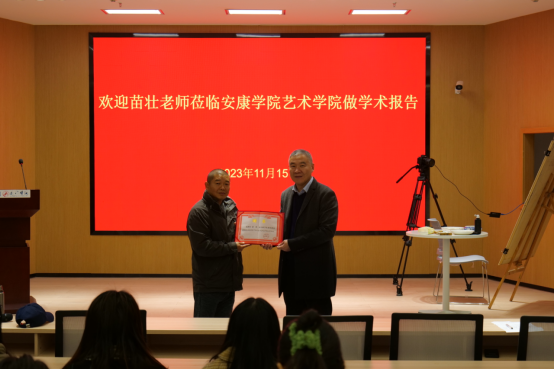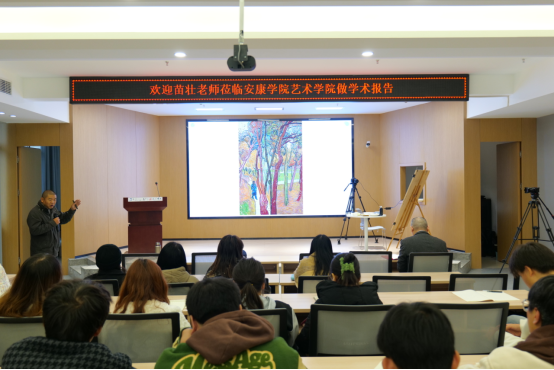 11月15日下午,中国美术家协会会员、中国美术家协会河山画会会员、一级美术师、陕西国画院画家业务办主任苗壮应邀为欧冠官网欧冠官方网站入口师生作《中国画的边界》学术报告。报告由欧冠官方网站入口副院长孙海洋主持,欧冠官方网站入口美术专业师生聆听了报告。