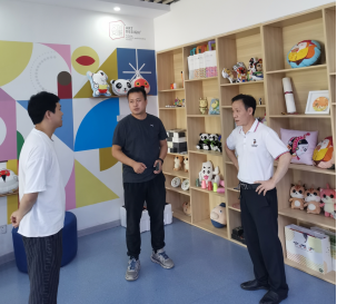 8月10日,安康爱多宝动漫文化产业有限公司总经理王亮一行来欧冠官方网站入口创业孵化园-安康文创设计与品牌开发中心就建立安康毛绒玩具设计研发基地进行实地考察。设计系主任吴波介绍了欧冠官网办学基本情况,就应用型人才培养、设计系专业建设、学院服务安康毛绒玩具文创产业等工作进行了交流。