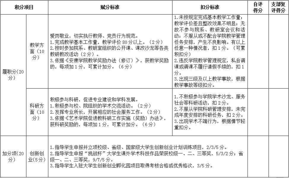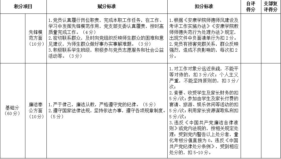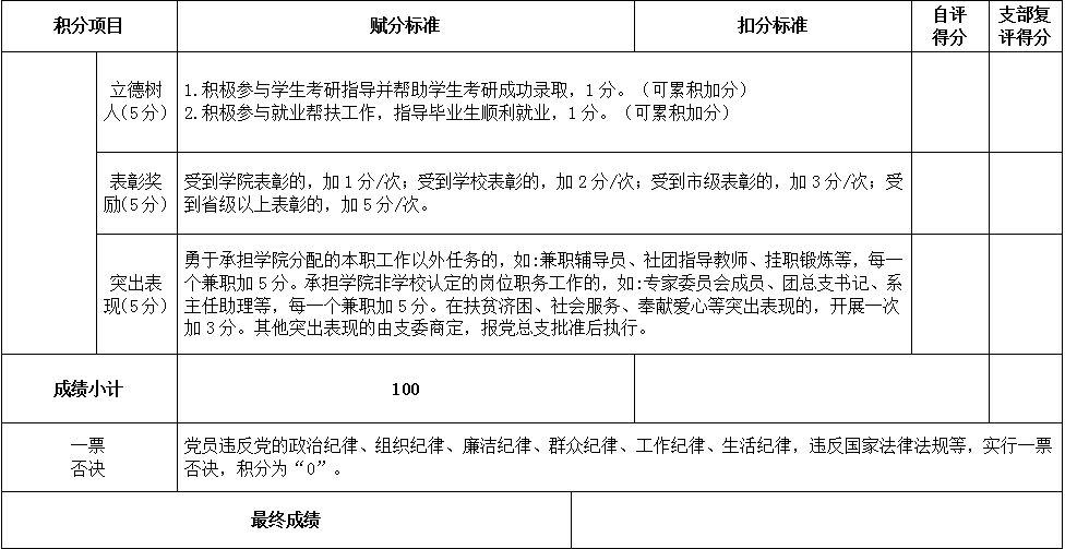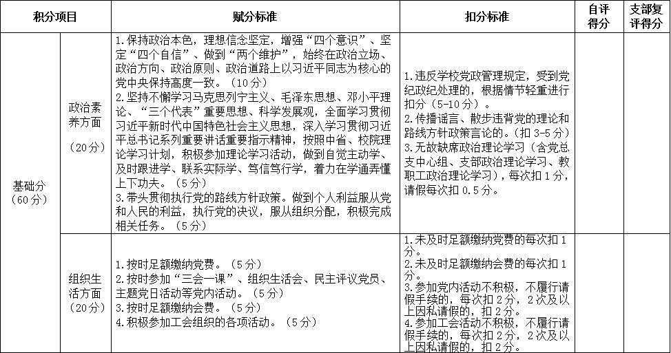 欧冠官方网站入口教工党支部党员积分表(试行)